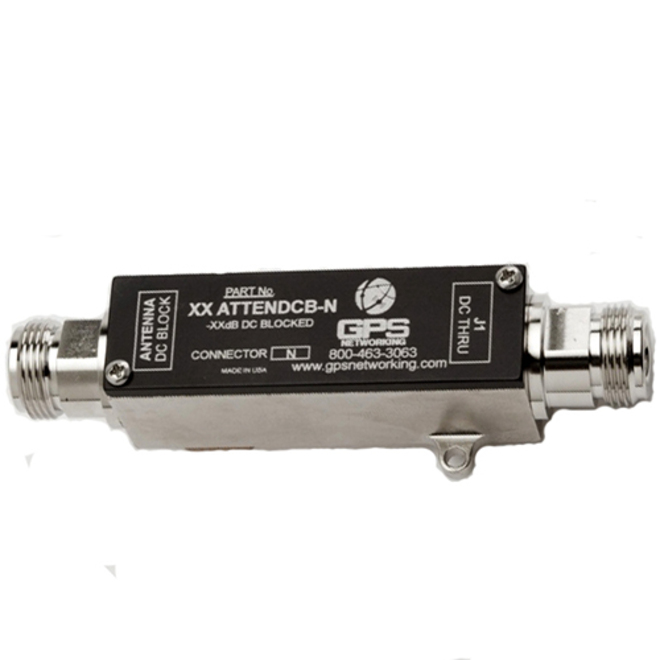 The XXATTENDCB GPS RF Attenuator is a one input, one output device with a constant attenuation anywhere in the range from 1dB to 20dB, as specified by the customer. The device is available in a miniaturized housing. The frequency response covers the GPS L1/L2 and GLONASS bands with excellent flatness. In the DC Blocked configuration, the RF output (J1) blocks DC from the connected GPS receiver through the attenuator to the antenna.