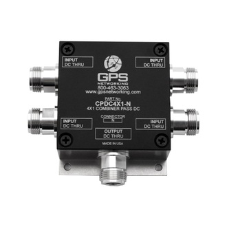 The CPDC4X1 GPS Combiner (GNSS Combiner) is a four input, one output device. The frequency response covers the entire L-band (all GNSS Frequencies) with excellent flatness. In the standard configuration, DC is passed from a connected GPS device through the combiner to all inputs (antenna ports). The connected GPS device or receiver will continue to maintain a GPS lock in theevent of an antenna failure. Contact GPS Networking Technical Support for any questions regarding standard configurations or special configurations at salestech@gpsnetworking.com or 1-800-463-3063.