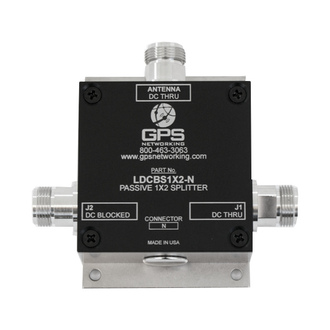 This Loaded DC Blocked Splitter 1X2 (LDCBS1X2) is a passive one input, two output RF splitter that splits signals from 1.1 GHz to 1.7 GHz. This equipment is designed to passively split signals within the L-band to provide multiple devices with the signal from a single antenna. In the standard configuration, the J1 port will pass DC voltage from a connected device and pass this power to the antenna or other devices upline from the splitter. The other port (J2) is DC blocked and loaded with 200Ω resistors to simulate antenna current draw which prevents antenna alarm faults. Custom gain, DC power, and connector configurations are available upon request.