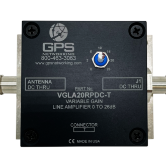 This Variable Gain Line Amplifier 20dB Regulated Pass DC (VGLA20RPDC) is an active one input, one output amplifier optimized for GPS applications. The gain is customizable using the lid mounted potentiometer. This equipment accepts signals covering all major GNSS constellations.
